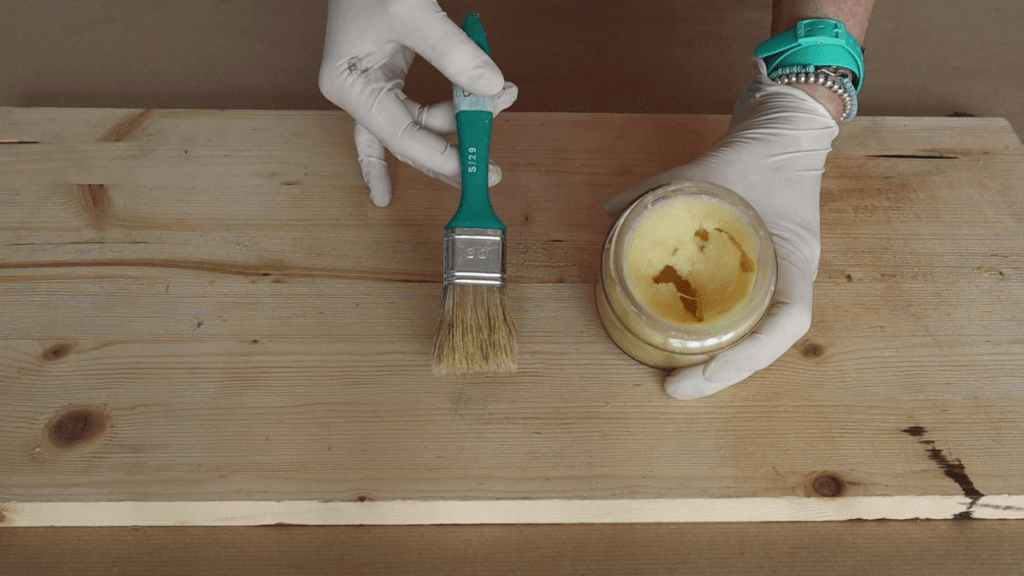 Il procedimento di stesura è lo stesso che usiamo per la cera naturale quindi, ricapitolando, stendiamo la nostra cera colorata a pennello o con un panno e diamo una prima passata.