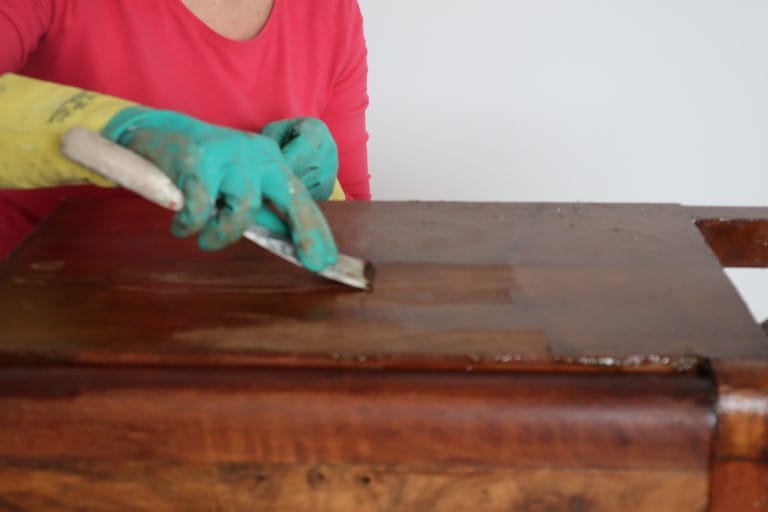 7.Ricominciamo quindi dall’inizio, alternando sverniciatore e paglietta e vedremo lo strato di legno grezzo fare capolino.
