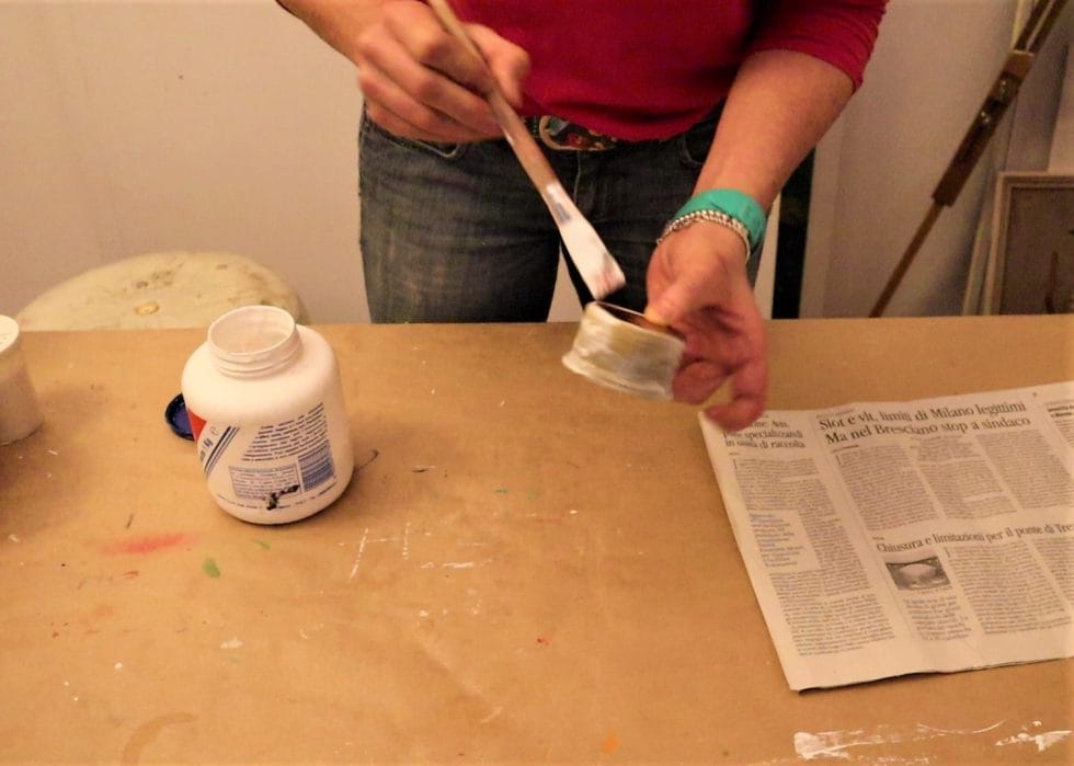 Una volta finito con il colore siamo pronte per la colla vinilica.