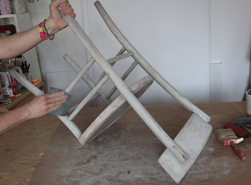Io ho usato una spugna abrasiva per sgrossare e poi la carta vetro n.80 per i punti più critici. Se non sei un’esperta di carta vetro puoi guardare questo video in cui ti spiego tutto quel che serve.